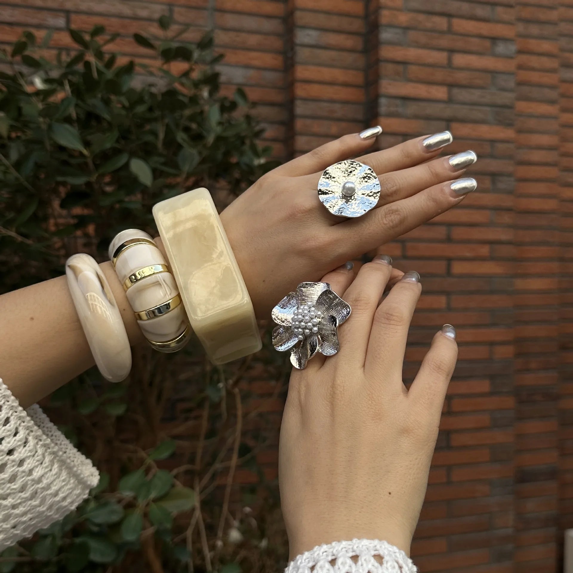 Dica de Estilo: O Bracelete Mirage é uma joia de presença. Use-o sozinho em um dos pulsos para um visual de "luxo silencioso" ou combine com os Brincos Gota Essence para um conjunto harmonioso e potente.